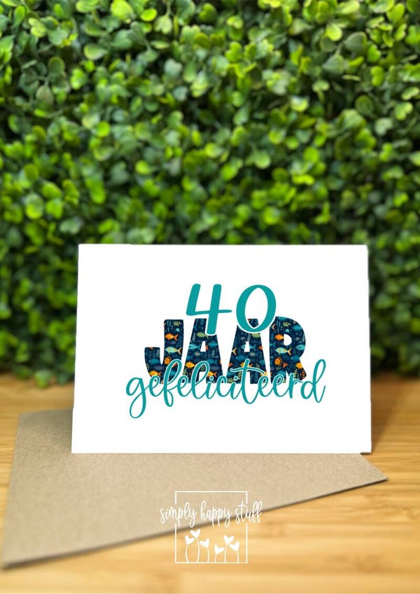 40 jaar - cijfer - leeftijd - verjaardag - samen - vis - aanpasbaar - blauw