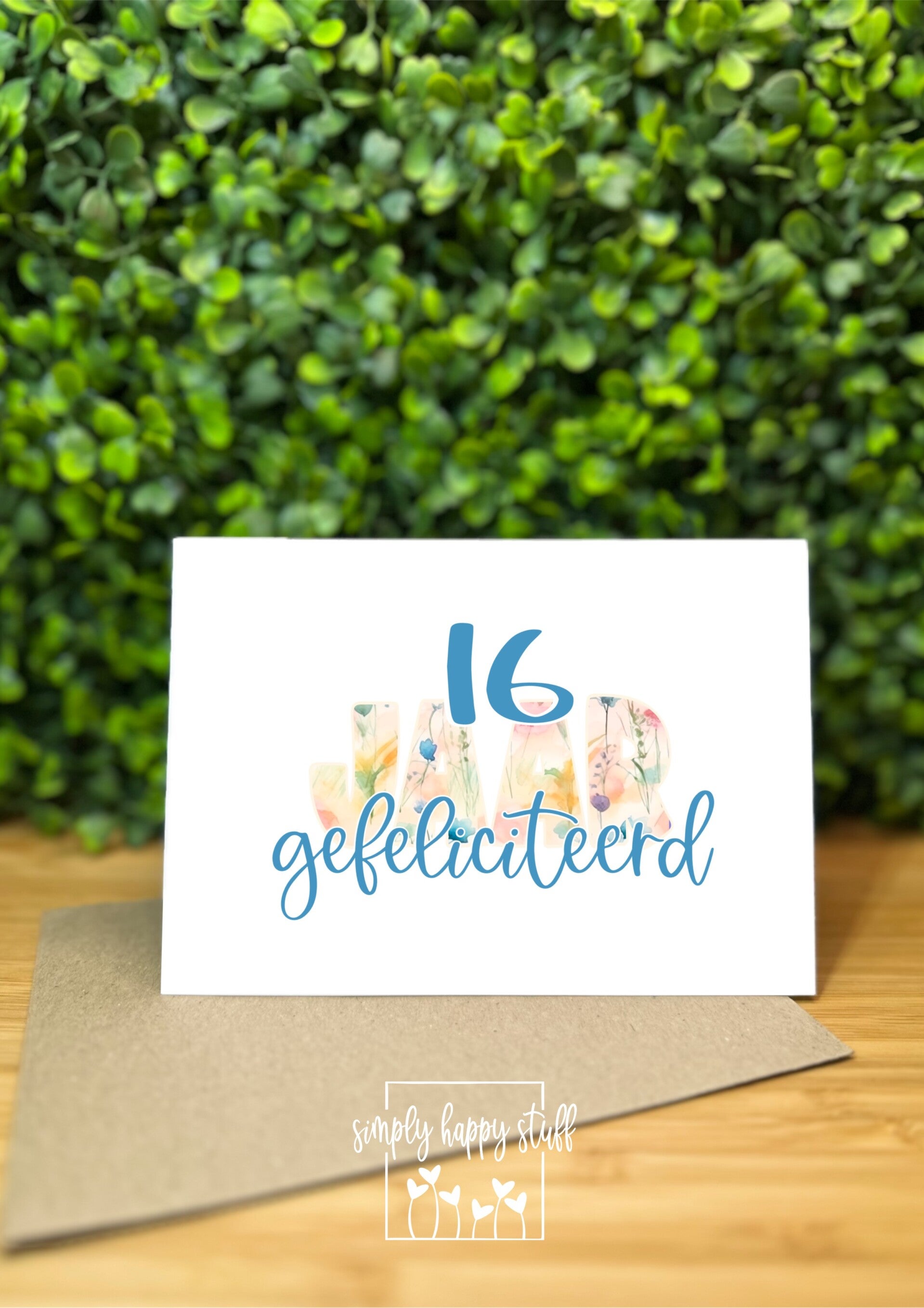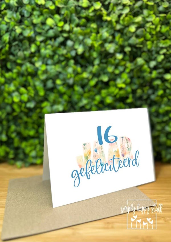 cijfer - kaart - leeftijd - 16 - bloemen - uniek - op maat gemaakt - cijfer aanpasbaas