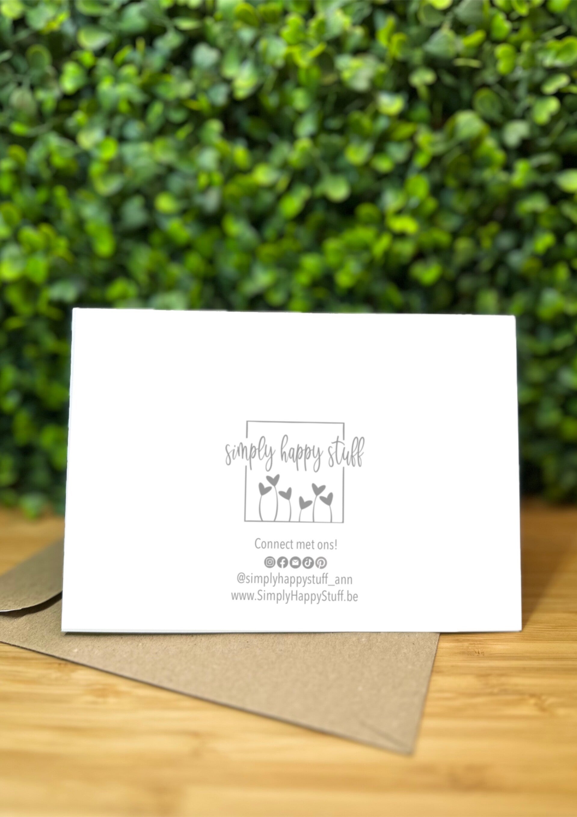 Deze kaart is ontworpen op de iPad (ProCreate) en thuis geprint op stevig offwhite Eco-BioTop papier zodat het design puur en simpel is gebleven.