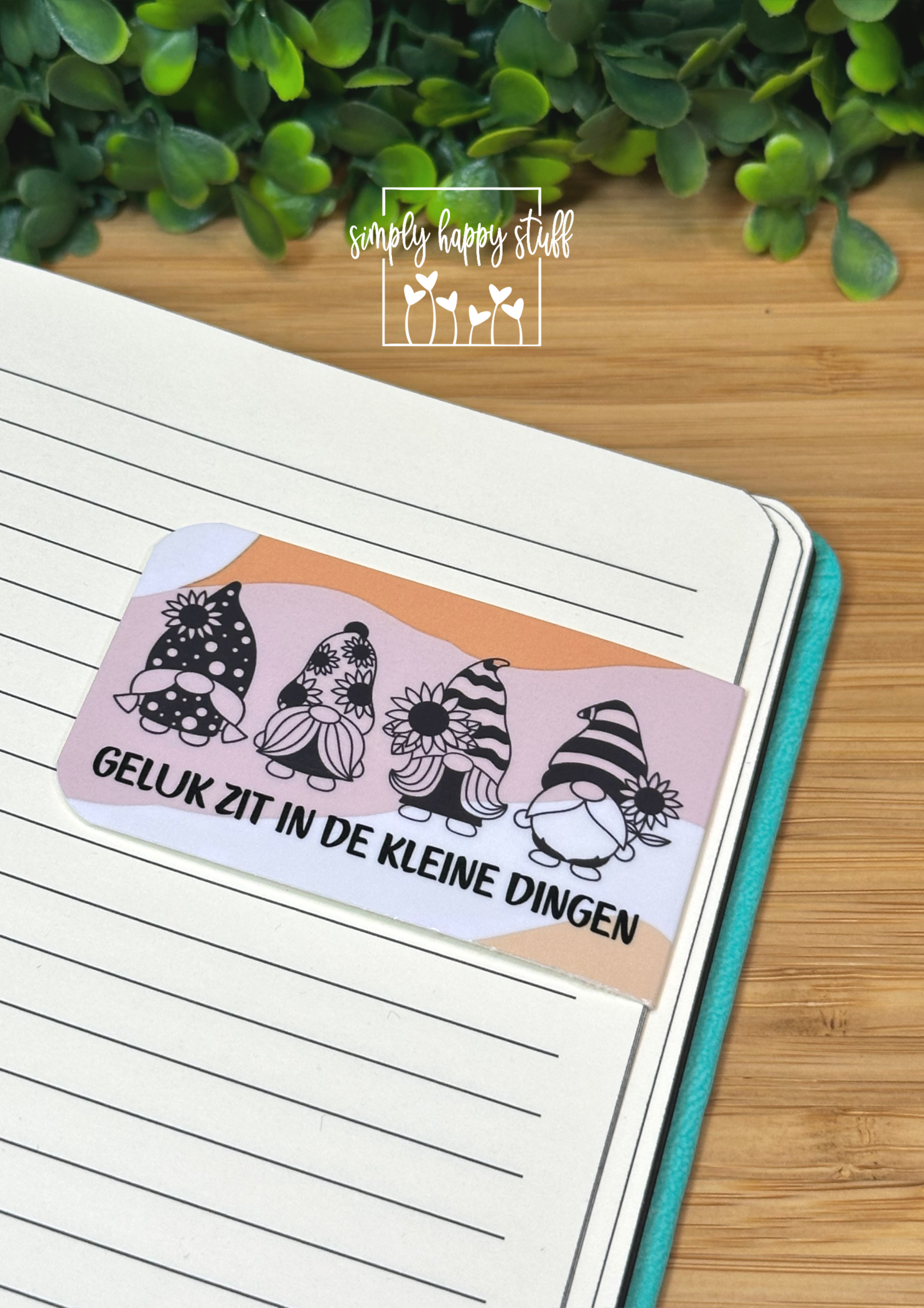 Grappig notitieblokje, kabouters, leuke boodschappen, kleine krabbels, Geluk zit in de kleine dingen.
